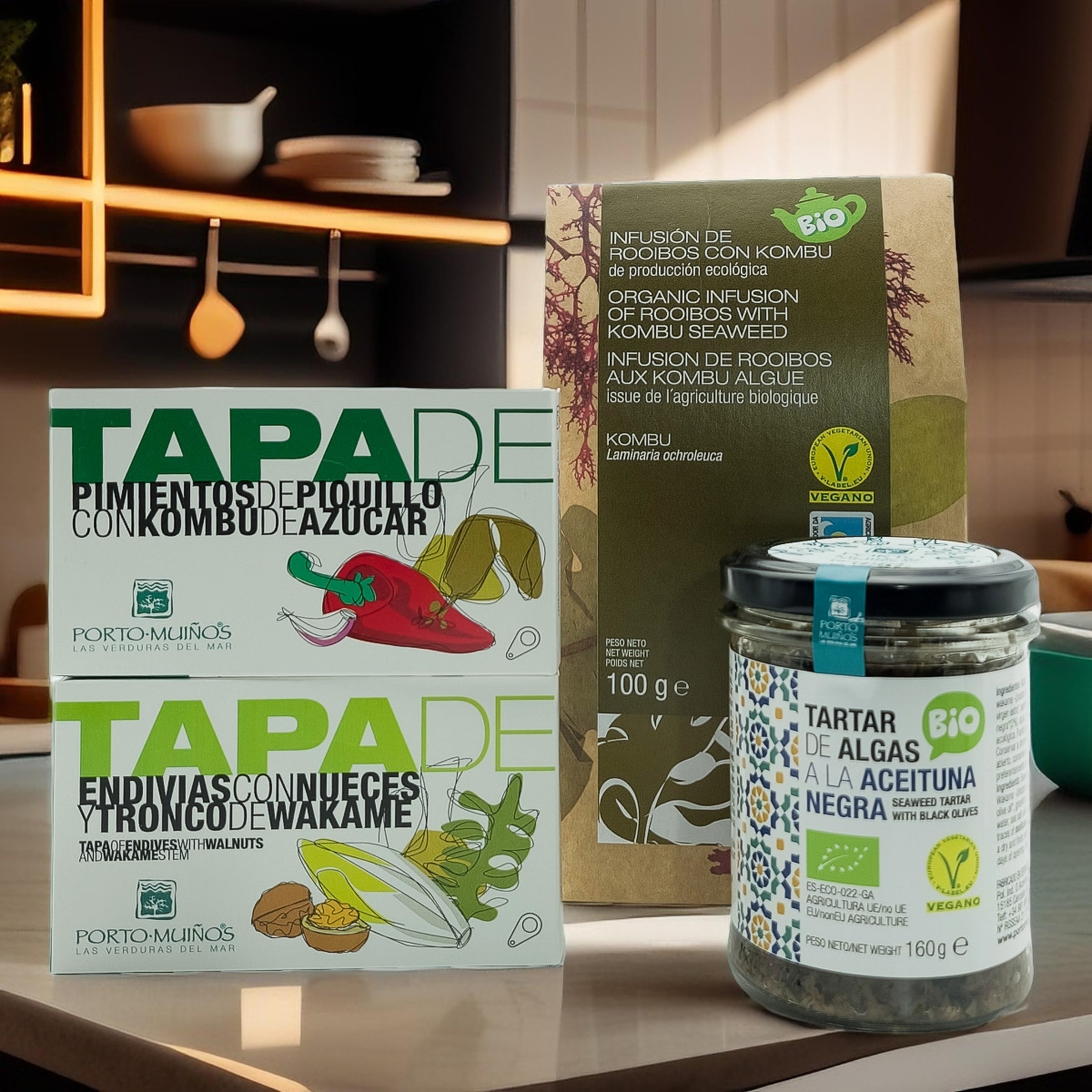 Dieses Paket vereint überraschende und leckere Produkte ohne tierische Zutaten. Kalte Tapas, knuspriges Brot, eingelegte Algen und ein Gemüseaufstrich, der Sie direkt an den Atlantik entführt.