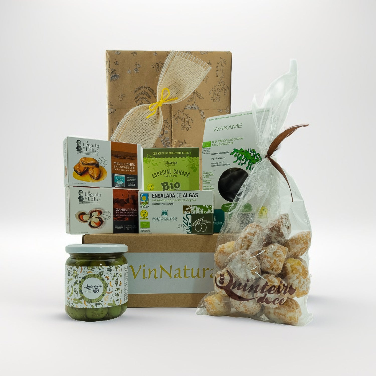 Esta caja de regalo es una entrada a la gastronomía Gallega. Combina conservas artesanales del mar, algas recolectadas a mano y dulces tradicionales que evocan los sabores de los pueblos Gallegos.